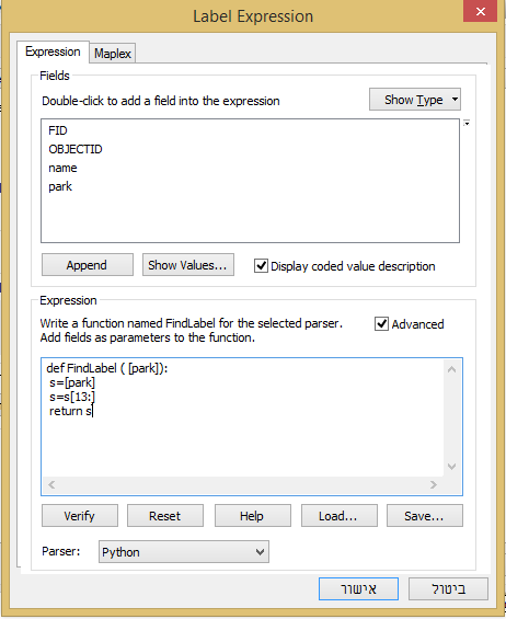 - לבחור Expression בחלונית התווית.
