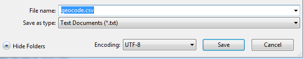 את החומר לו אנחנו רוצים לבצע גיאוקוד נשמור ב CSV כ UTF-8 כאשר כדאי לבצע איזה טיוב ראשוני של כתובות לא הגיוניות הפרדת העיר מהכתובת מחיקת הערות שלא קשורות לכתובת במידה וניתן (קומה 8 דלת ראשונה.. למשל)